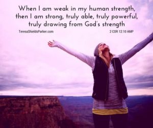 “But He said to me, ‘My grace is sufficient for you, for My power is made perfect in weakness.’ Therefore I will boast all the more gladly about my weaknesses, so that Christ’s power may rest on me. That is why, for Christ’s sake, I delight in weaknesses, in insults, in hardships, in persecutions, in difficulties. For when I am weak, then I am strong.” 2 Corinthians 12:9-10 (NIV)